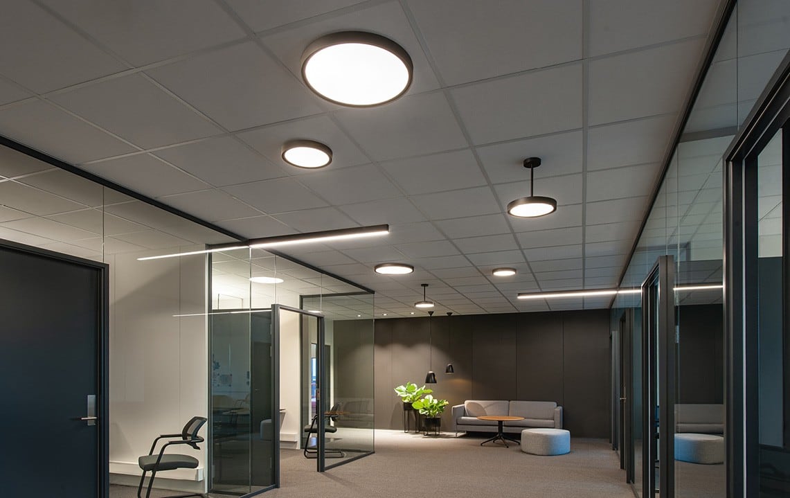 DISC est un luminaire rond qui offre un look moderne. Sa personnalité est rès forte mais sa faible épaisseur fait oublier qu'il s'agit d'un appareil en saillie et connecté