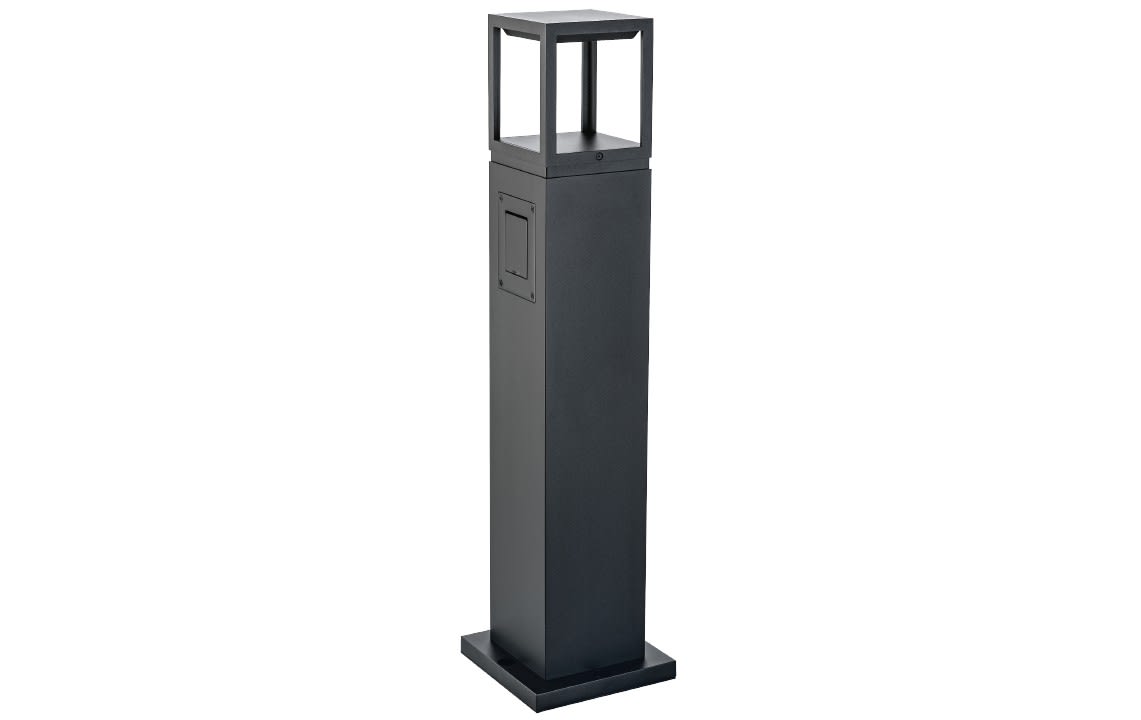 Borne 800mm ultra contemporaine, équipée d'une prise,de courant idéale pour balisage d'allées de jardins ou hôtellerie de plein air, campings