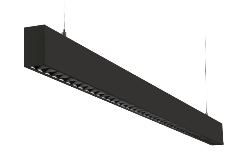 Suspension avec réflecteurs cubiques noirs empêchant tout éblouissement, distribution de la lumière directe et indirecte