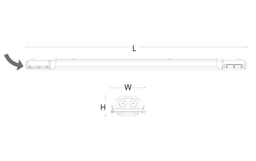 Facilité d'installation grâce à platine articulée, montage soit au plafond soit avec crochets de montage pour câblage horizontal