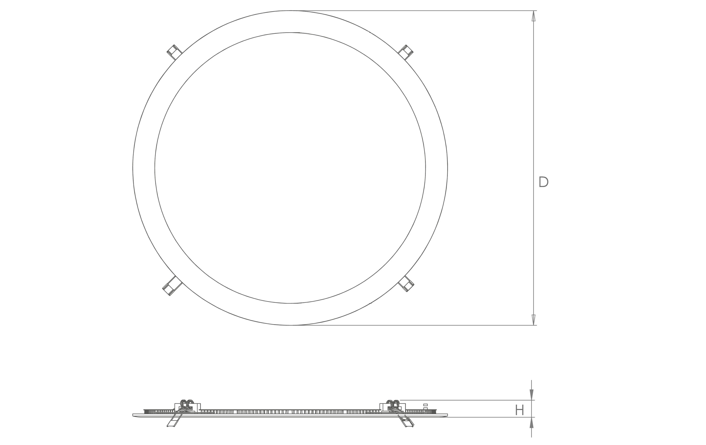 Gamme complète de luminaires LED ronds, carrés, différentes tailles, encastrés et suspendus