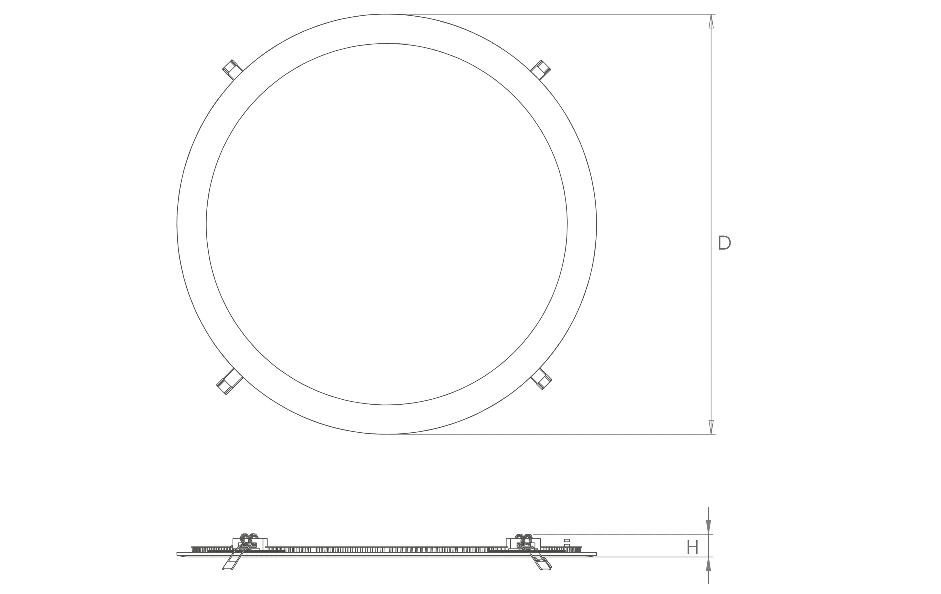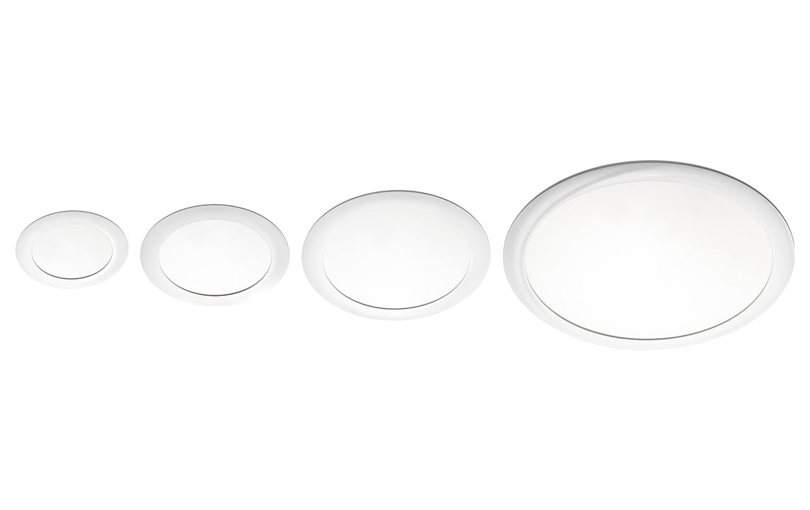 Gamme complète de luminaires LED ronds, carrés, différentes tailles, encastrés et suspendus