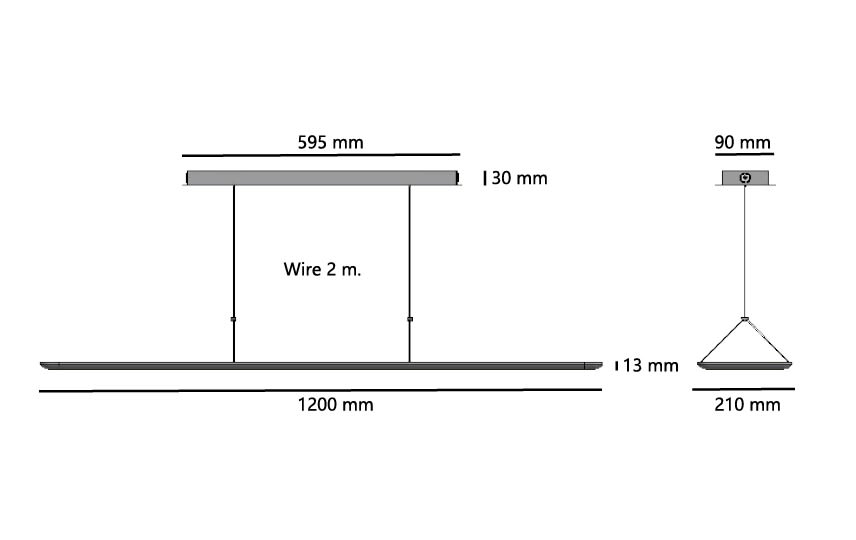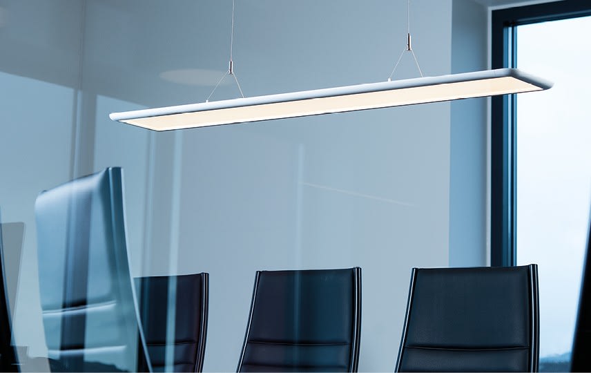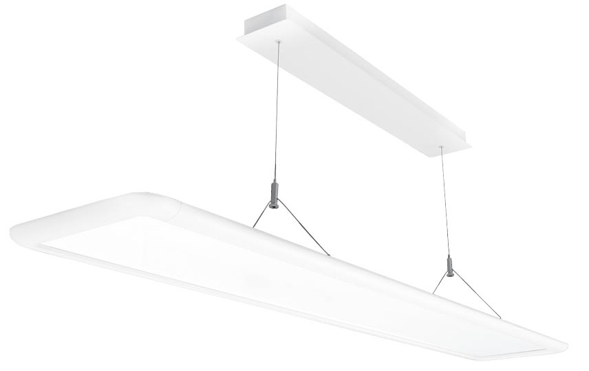 Sense Air dalle suspendue 1200x210mm blanc LED 4000K 3600 lumens DALI Push IRC >80 SDCM 3 durée de vie : L80/B20>100 000 heures UGR<17 matériau : aluminium et PMMA 230V classe II IP40 alimentation par filins