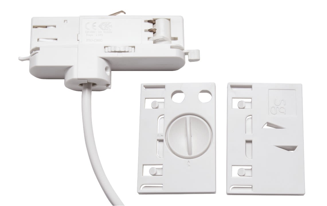 Shopline kit accessoire en polycarbonate blanc comprenant 2 pièces de fixation et un adaptateur d'alimentation pour rail 3 allumages DALI et pour luminaire Arena uniquement