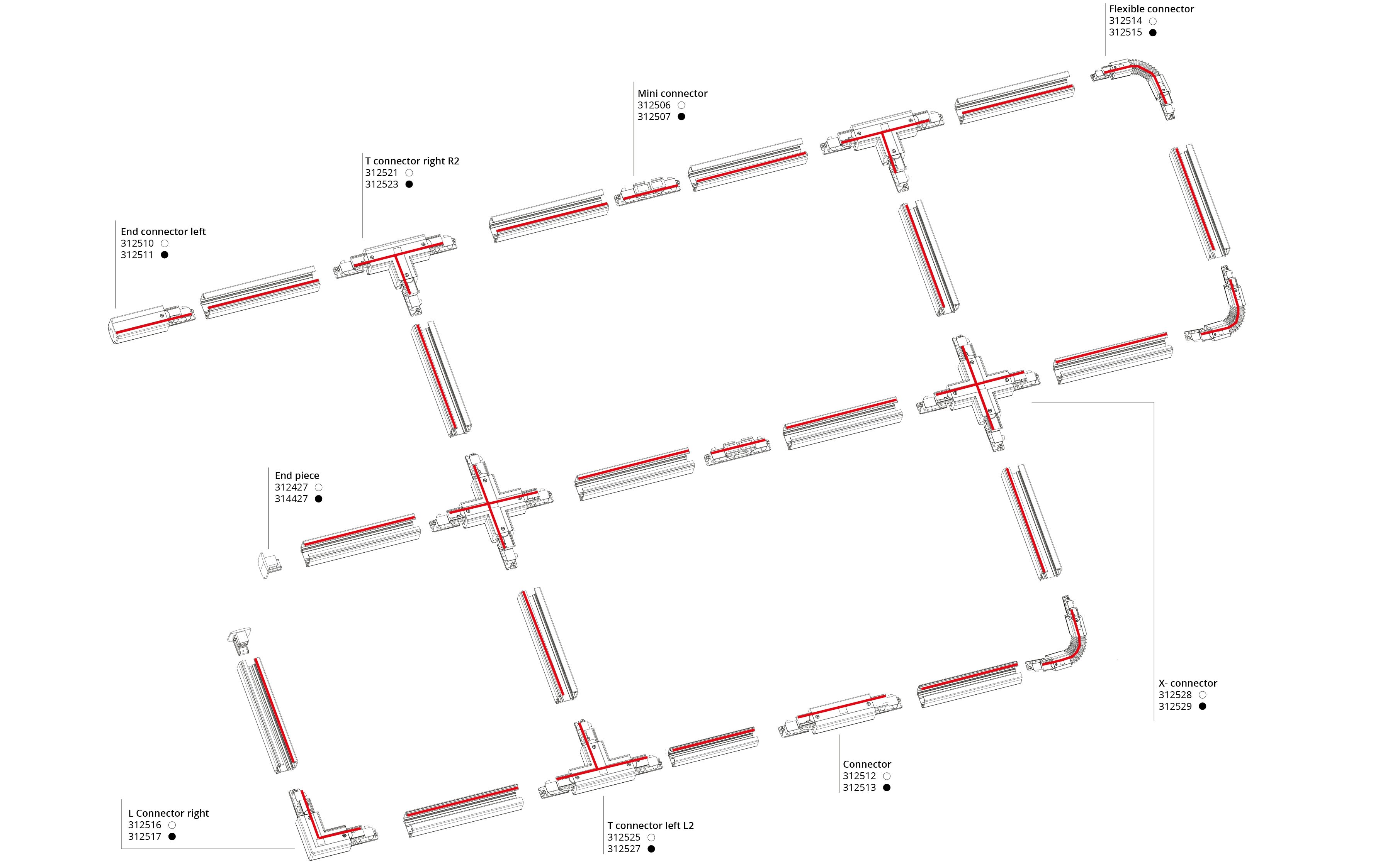 Gamme complète de rais, projecteurs et accessoire en DALI