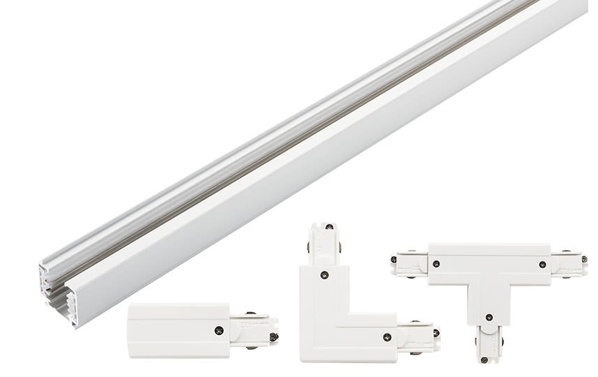 Shopline est un système de rail épuré avec accessoire : patère alimentation rail 3 allumages blanc PC 230V IP20
