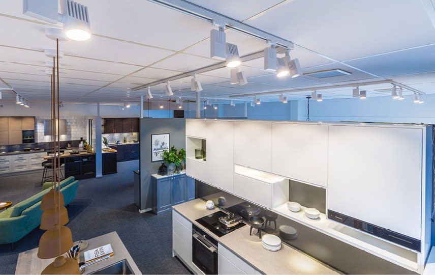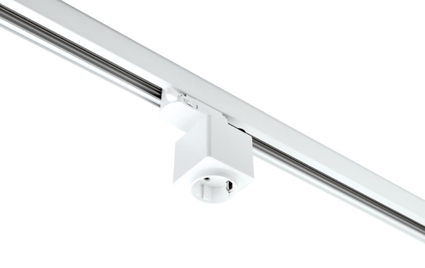 Shopline est un système de rail épuré avec accessoire : prise de courant rail 3 allumages blanc PC 230V IP20