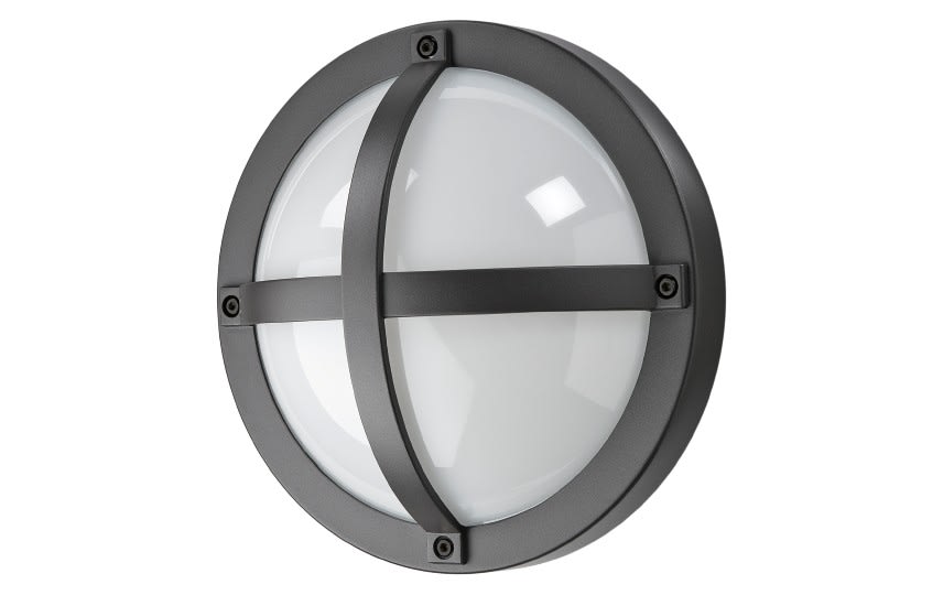 Solo hublot extérieur avec croisillon graphite douille E27 (sans source) matériau : aluminium et PC 230V classe I IP44 IK10