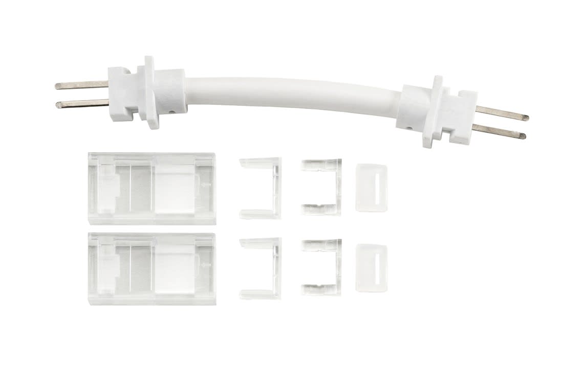 Stripline 230V Outdoor connecteur flexible alimenté blanc module : 50mm longueur : 125mm il permet de faire la jonction entre 2 rubans LED il est livré avec des embouts étanches classe II IP65