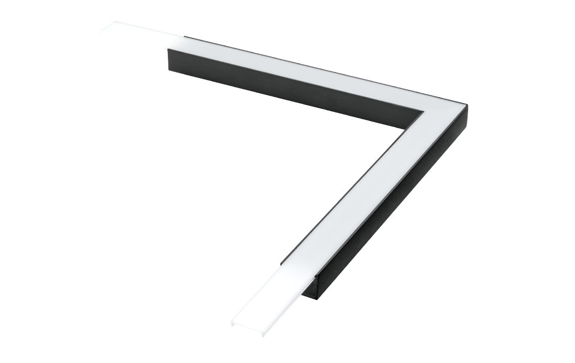 Stripline profilé de surface d'angle pour ruban LED utilisation intérieur ou extérieur d'une longueur de 2 mètres noir matériau : aluminium et polycarbonate stabilisé aux UV