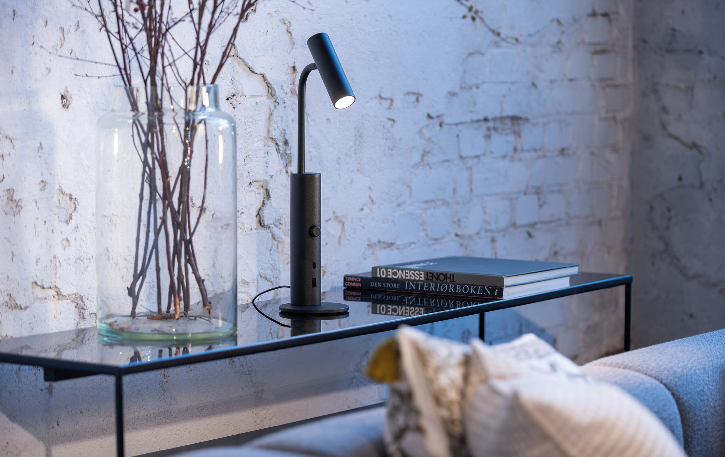 SG Lighting - Tube Micro Table noir 360lm 3000K Ra 98 variateur et chargeur USB intégrés - 320858