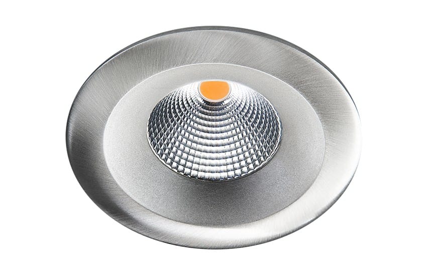 Uniled Isosafe Blade downlight pour montage direct dans l'isolant acier brossé LED 7W 3000K 610 lumens coupure de phase IRC >95 SDCM 2 UGR< 21 L90/B10 >50 000 heures faisceau de 42° matériau : aluminium et verre 230V classe II IP54