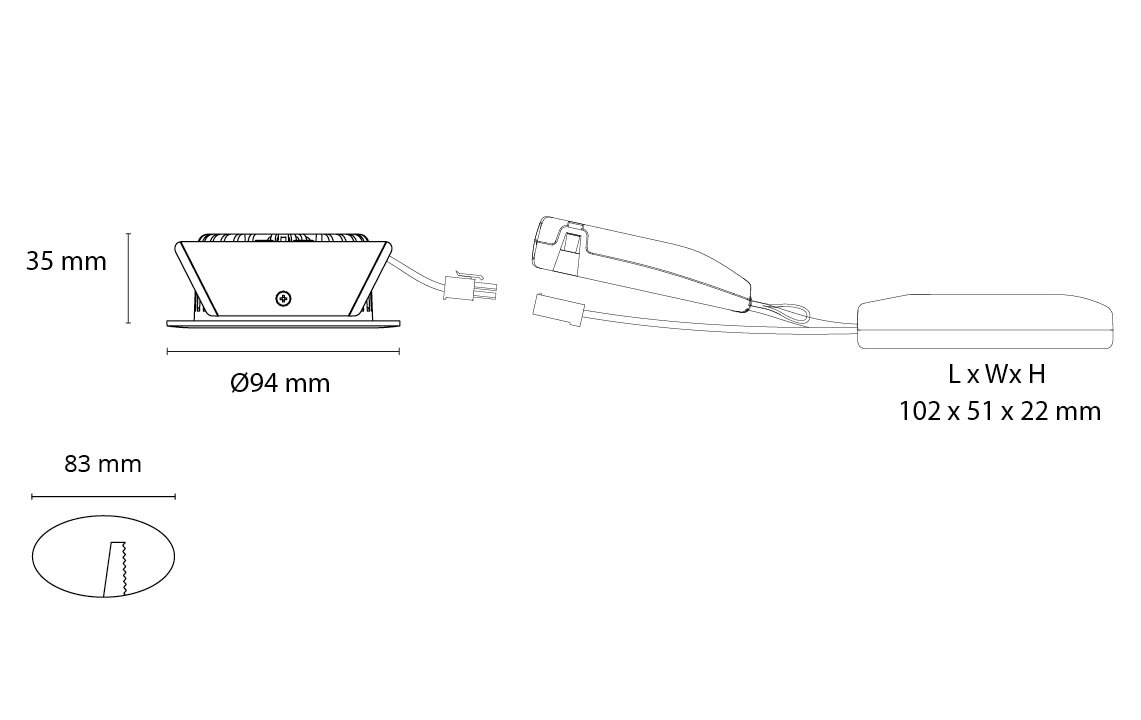 SG Lighting - UniledIsosafe Blade downlight béton acier br. 630lm 3000K Ra98 coupure de phase - 904332