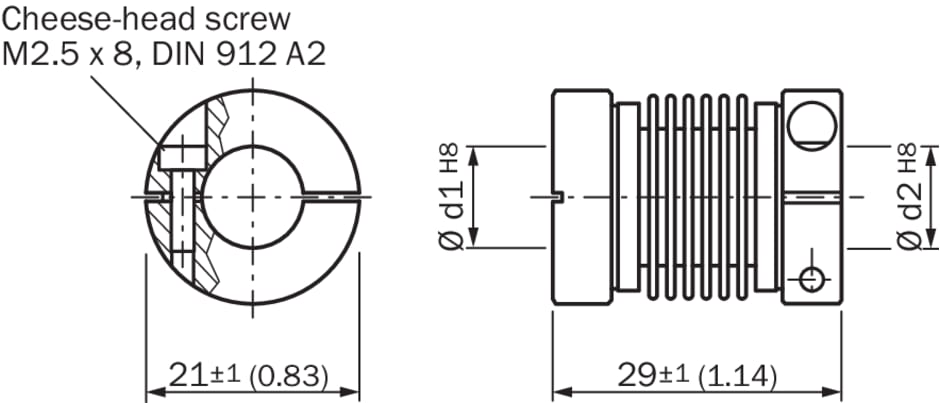 adaptateur pour axe, accouplements d'arbre, KUP-0610-B, Segment de produits: Adaptateur pour axe, Produit: Accouplements d'arbre, Description: Accouplement à soufflet, diamètre d'arbre 6 mm / 10 mm, décalage d'arbre maximum : radial +/- 0,2