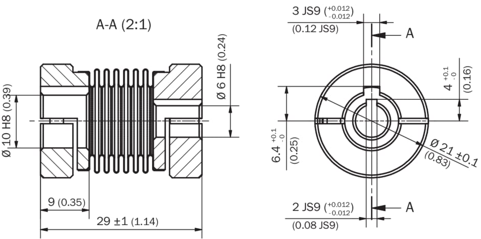 adaptateur pour axe, accouplements d'arbre, KUP-0610-BP, Segment de produits: Adaptateur pour axe, Produit: Accouplements d'arbre, Description: Accouplement à soufflet, diamètre d'arbre 6 mm / 10 mm, décalage d'arbre maximum : radial +/- 0,