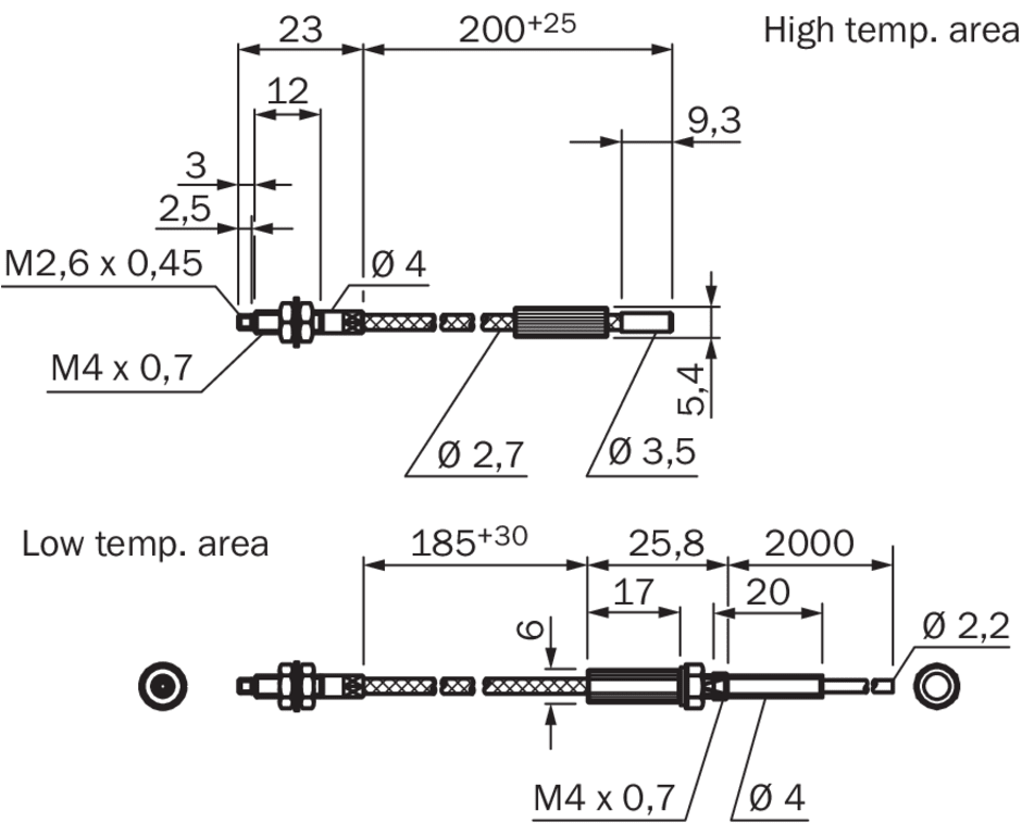 Amplificateurs à fibres optiques, Câbles à fibres optiques, LL3-TH12, Principe de fonctionnement: Système émetteur-récepteur, Forme tête de fibres optiques : Embout fileté, Longueur du câble à fibres optiques: 2.000 mm, Diamètre filetage (boîtier): M4, Matériau, fibre: Verre, Matériau, gaine: Acier inoxydable, Matériau, tête de fibre optique: Laiton, Compris dans la livraison: Fixation, 6 x écrou à six pans M4, 2 x écrou à six pans (plastique) M4, 4 x rondelle, appareil de coupe de fibres optiques FC (5304141), LL3-TB09