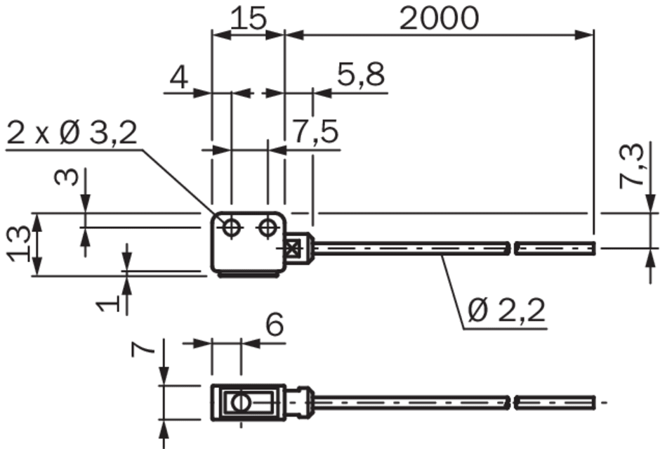 Amplificateurs à fibres optiques, Câbles à fibres optiques, LL3-TY05, Principe de fonctionnement: Système émetteur-récepteur, Forme tête de fibres optiques : Forme plate, déflecteur 90°, Longueur du câble à fibres optiques: 2.000 mm, Matéri