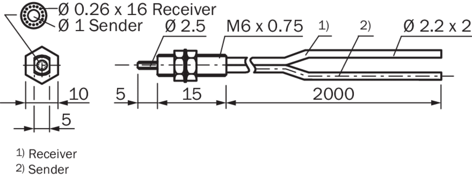 Amplificateurs à fibres optiques, Câbles à fibres optiques, LL3-DB01, Principe de fonctionnement: Système de détection, Forme tête de fibres optiques : Embout fileté, Longueur du câble à fibres optiques: 2.000 mm, Diamètre filetage (boîtier): M6, Matériau, fibre: Plastique, Matériau, gaine: Plastique, Matériau, tête de fibre optique: Acier inoxydable, Compris dans la livraison: Fixation, 2 x écrou à six pans M6, 2 x rondelle, appareil de coupe de fibres optiques FC (5304141)