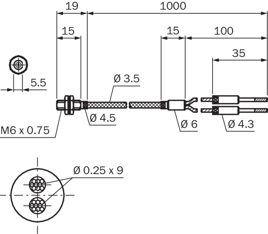 Amplificateurs à fibres optiques, Câbles à fibres optiques, LL3-DJ02, Principe de fonctionnement: Système de détection, Forme tête de fibres optiques : Embout fileté, Longueur du câble à fibres optiques: 1.000 mm, Diamètre filetage (boîtier): M6, Matériau, fibre: Plastique, Matériau, gaine: Acier inoxydable, Matériau, tête de fibre optique: Laiton, Compris dans la livraison: Fixation, 2 x écrou à six pans M6, 1 x rondelle