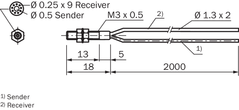 Amplificateurs à fibres optiques, Câbles à fibres optiques, LL3-DT01, Principe de fonctionnement: Système de détection, Forme tête de fibres optiques : Embout fileté, Longueur du câble à fibres optiques: 2.000 mm, Diamètre filetage (boîtier): M3, Matériau, fibre: Plastique, Matériau, gaine: Plastique, Matériau, tête de fibre optique: Acier inoxydable, Compris dans la livraison: Fixation, 2 x écrou à six pans M3, 2 x rondelle, manchons adaptateurs, manchons adaptateurs BF-WLL160-13 (1,3 mm), appareil de coupe de fibres optiques FC (5304141)