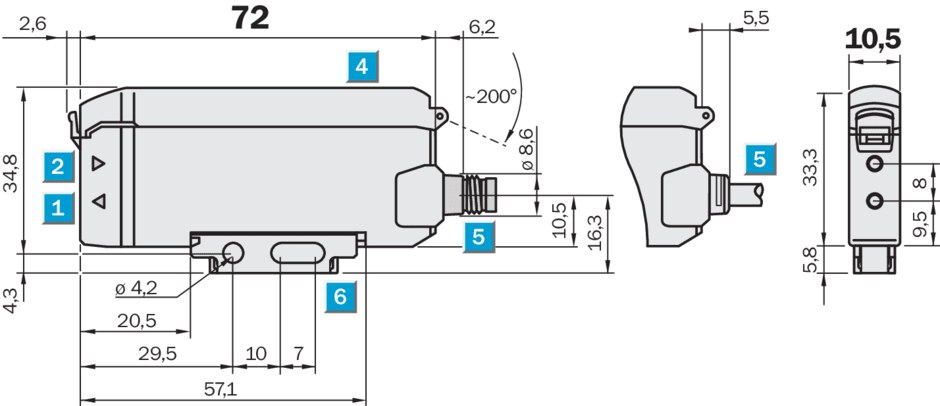 Amplificateurs à fibres optiques, WLL190, WLL190T-2P492, Distance de commutation max.: 2 ... 4 m, Type de commutation: Commutation claire/sombre, Mode de raccordement: Câble, 4 fils, Indice de protection: IP66, Réglage: Commandé par menus, touche d'apprentissage, câble