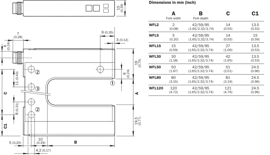 capteurs à fourche, WFL, WFL15-60B416, Réglage: Bouton plus/moins, Source d'émission: Laser, rouge, Écartement/profondeur de fourche: 15 mm, 59 mm, Sortie de commutation: PNP/NPN, Type de commutation: Commutation claire/sombre, Mode de raccordement, détail: Connecteur mâle M8, 4 pôles, Fréquence de commutation: 10 kHz, Temps de réponse: ≤ 100 µs