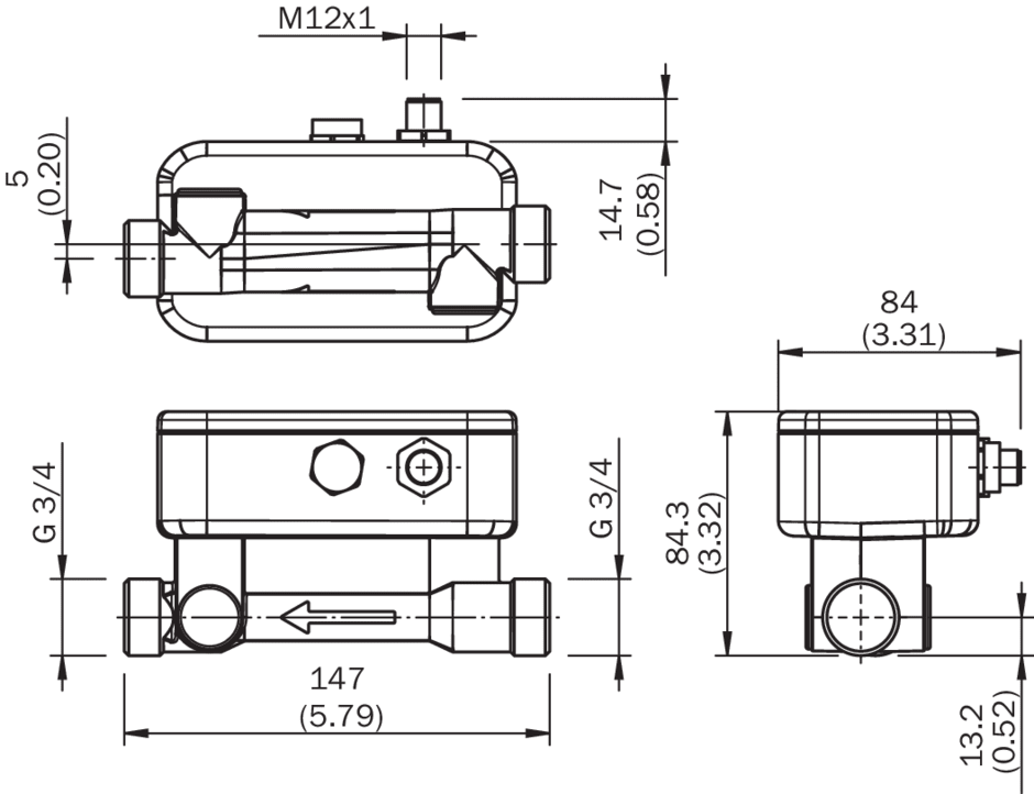capteurs de débit, FFU, FFUS15-1G1SR, Diamètre nominal du tube de mesure: DN 15, Débit maximal: ? 36 l/min, Matériaux en contact avec la matière: PPSU, EPDM, Raccord process: G ¾, Signal de sortie: Sortie analogique 4 mA ... 20 mA, 0 mA ...