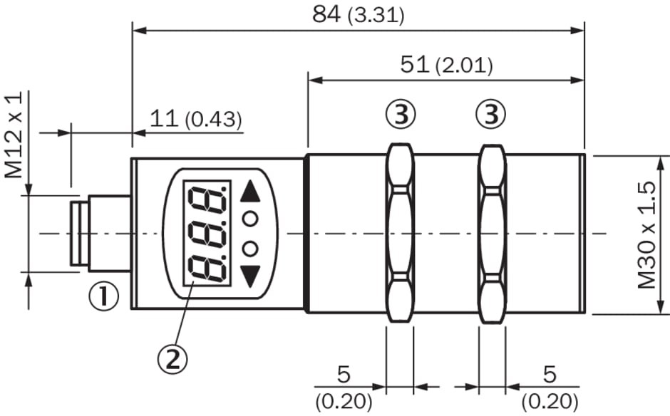 Capteurs de distance à ultrasons, UM30, UM30-213114, Interface de communication: -, Portée de travail, portée limite: 200 mm ... 1.300 mm, 2.000 mm, Mode de raccordement: Connecteur mâle, M12, 5 pôles, Sortie d'émission: Droit, Temps de réponse: 92 ms, Sortie numérique: 2 x NPN