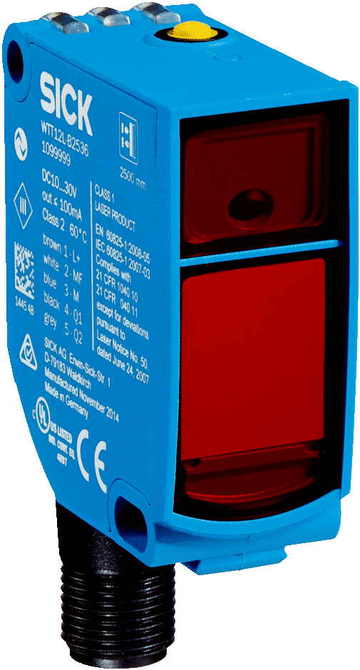 capteurs de distance laser, WTT12 PowerProx, WTT12L-B2532, Version du produit: PowerProx Speed, Distance de commutation max.: 50 mm ... 2.500 mm, Principe de fonctionnement: Détecteur à réflexion directe, Principe de fonctionnement, détail: Élimination d'arrière-plan, Temps de propagation de la lumière, Sortie de commutation: Push-pull : PNP/NPN, Type de commutation: Commutation claire/sombre, Mode de raccordement: Fiche M12, 5 pôles, Sortie analogique: -, Interface de communication: -