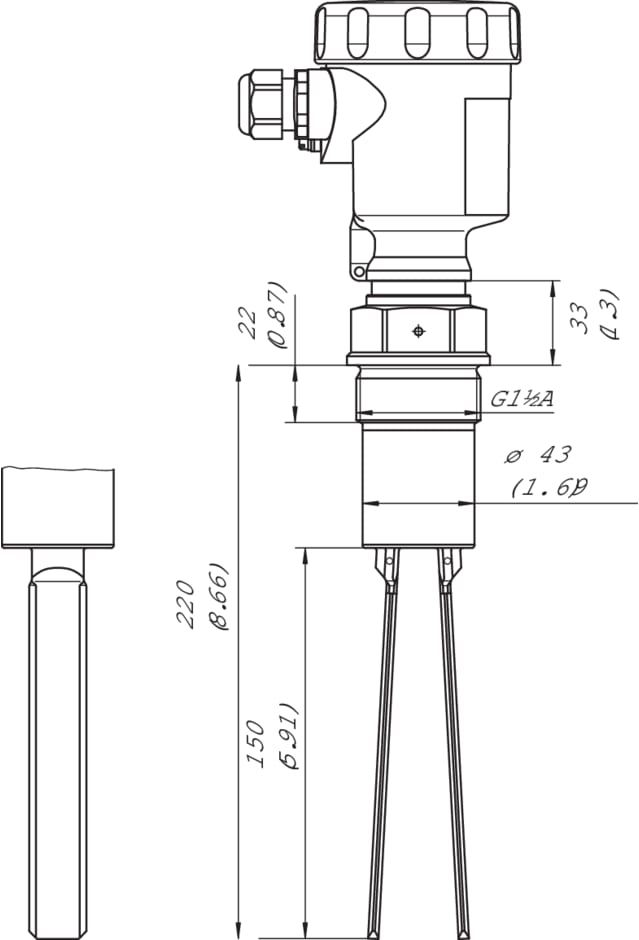 Capteurs de niveau, LBV300, LBV310-XXBNDC8NX, Raccord process: G 1½ A PN 25, Signal de sortie: Commutateur sans contact, Longueur de sonde: 220 mm, Matériau du boîtier: Acier inoxydable (électropoli), Mode de raccordement: ½" NPT, Température de process: –50 °C ... +250 °C, plage de températures avec adaptateur haute température