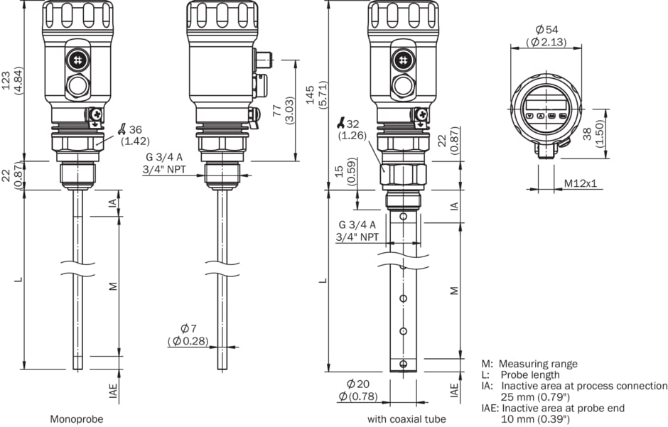 Capteurs de niveau, LFP Inox, LFP1200-G1NMB, Raccord process: G ¾ A, Longueur de sonde: 1.200 mm, Type de sonde: Sonde à tige en version hygiénique, Type d’application/forme: Standard, Signal de sortie: 1 x PNP + 1 x PNP/NPN + 4 mA ... 20 mA / 0 V ... 10 V, Mode de raccordement: Connecteur cylindrique M12 x 1, 5 pôles, Température de process: –20 °C ... +150 °C, Forme du boîtier: Avec vitre en verre PMMA (verre acrylique)