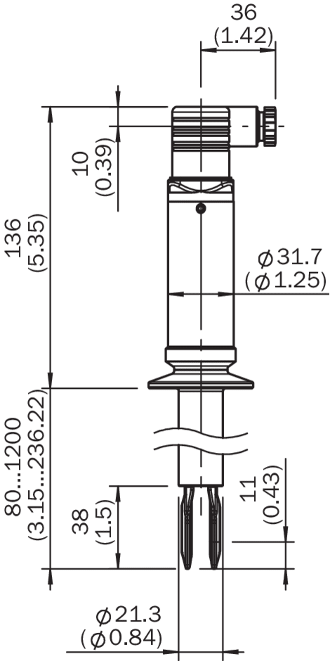 Capteurs de niveau, LFV200, LFV230-XXHCLCPV0128, Raccord process: Tri-Clamp 1" (PN 16, L, Ra < 0,8 μm), Signal de sortie: Commutateur sans contact, Longueur de sonde: 128 mm, Matériaux en contact avec la matière: Acier inoxydable 1.4404 (Ra ≤ 0,8 µm), Matériau du boîtier: Acier inoxydable 1.4404, PEI, Mode de raccordement: Connecteur de vanne DIN 43650, Température de process: –40 °C ... +150 °C