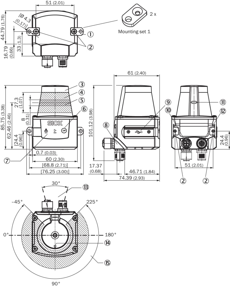 Capteurs LiDAR, TiM, TiM571-2050101, Application intégrée: Sortie des données, Principe de mesure: HDDM, Zone de fonctionnement: 0,05 m ... 25 m, Indice de protection: IP67, Sorties numériques: 1 (PNP, « SYNC » / « Device Ready »), Mode de raccordement: 1 x raccordement « Ethernet », connecteur femelle M12 4 pôles, 1 x raccordement « Power/sortie de synchronisation », connecteur mâle M12 5 pôles, 1 x connecteur femelle Micro-USB, type B