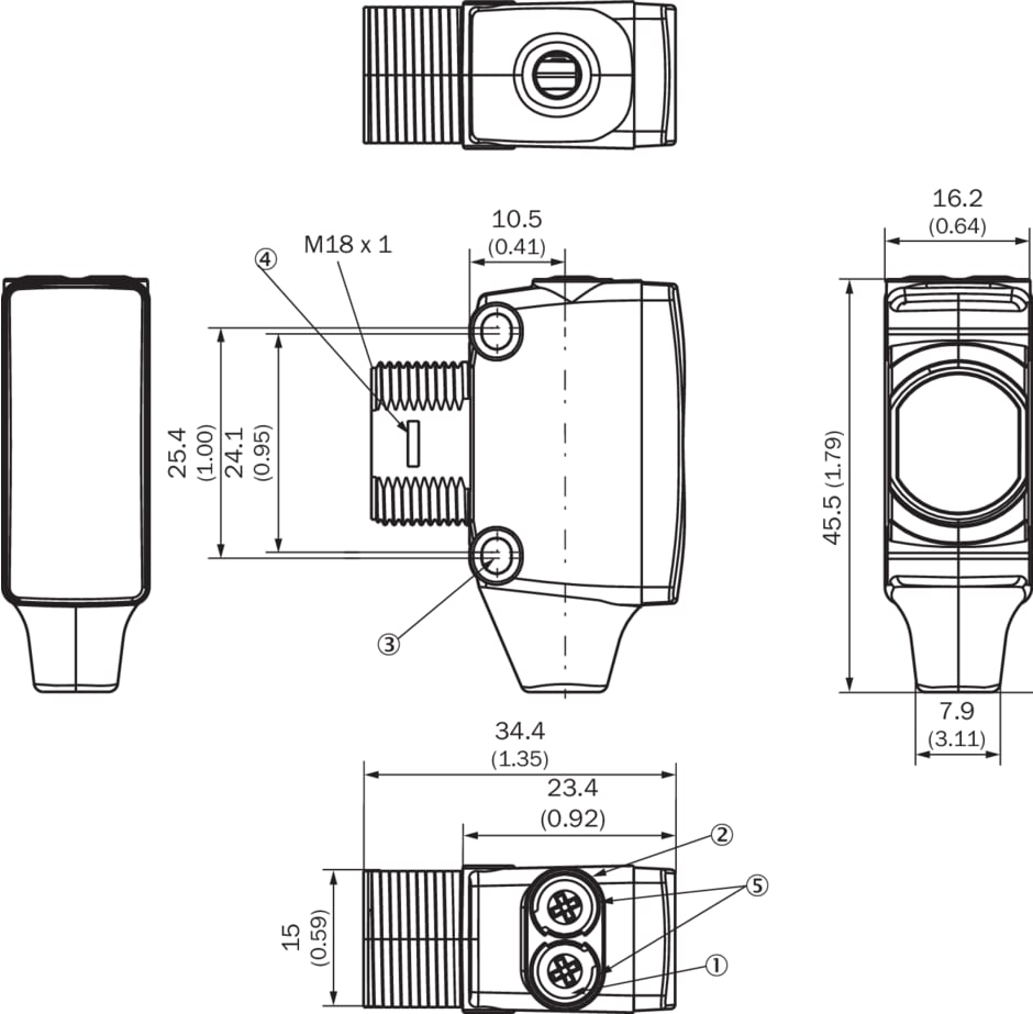 capteurs photoélectriques, H18 Sure Sense, HL18-M1G3AD, Version d’appareil: Standard, Interface de communication: -, Type de fixation: M18, tête/latéral (24,1 à 25,4 mm), Principe du capteur / de détection: Barrière réflex, Avec une distance minimale par rapport au réflecteur (système à double lentille), Distance de commutation: 6,5 m, Source d'émission, type de lumière: LED PinPoint, lumière rouge visible, Type de tension: CA/CC, Sortie de commutation Q1: MOSFET, commutation sombre, Potentiomètre, droite: Retard au déclenchement, réglable : 0 à 2 s, Potentiomètre, gauche: Aucune, Mode de raccordement: Extrémité de câble ouverte, 2 m