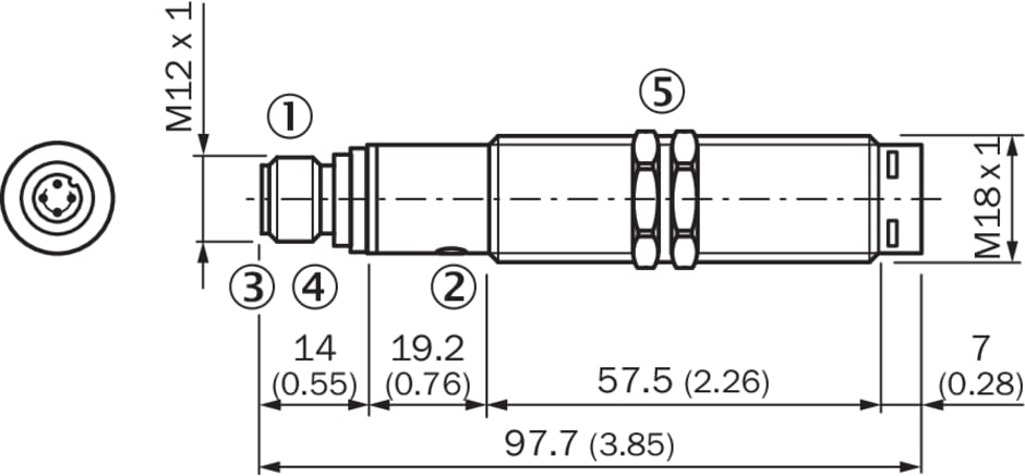 capteurs photoélectriques, V18, VSE18L-4P324, Principe de fonctionnement: Barrière émetteur-récepteur, Sortie de commutation: PNP, Type de commutation: Commutation claire/sombre, Mode de raccordement: Connecteur M12, 4 pôles, Source d'émission: Laser, Réglage: Potentiomètre, Classe laser: 1, Interface de communication: -