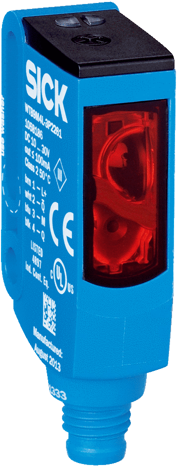 capteurs photoélectriques, W9, WTB9M4L-3P2291, Principe de fonctionnement: Détecteur à réflexion directe, Principe de fonctionnement, détail: Élimination d'arrière-plan, Sortie de commutation: PNP, Type de commutation: Commutation claire/sombre, Mode de raccordement: Connecteur mâle M8, 4 pôles, Source d'émission: Laser, Réglage: Potentiomètre, Classe laser: 2, Interface de communication: -