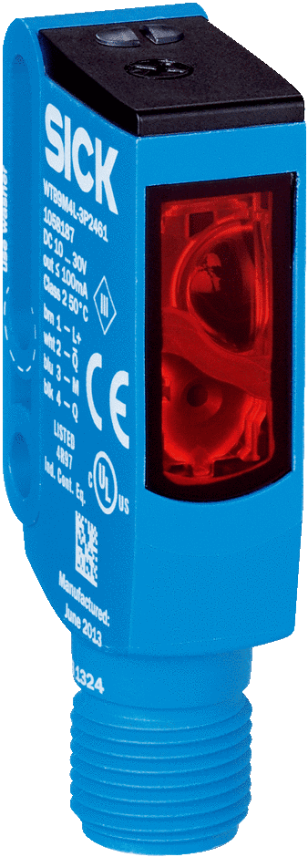 capteurs photoélectriques, W9, WTB9M4L-3P2491, Principe de fonctionnement: Détecteur à réflexion directe, Principe de fonctionnement, détail: Élimination d'arrière-plan, Sortie de commutation: PNP, Type de commutation: Commutation claire/sombre, Mode de raccordement: Connecteur M12, 4 pôles, Source d'émission: Laser, Réglage: Potentiomètre, Classe laser: 2, Interface de communication: -