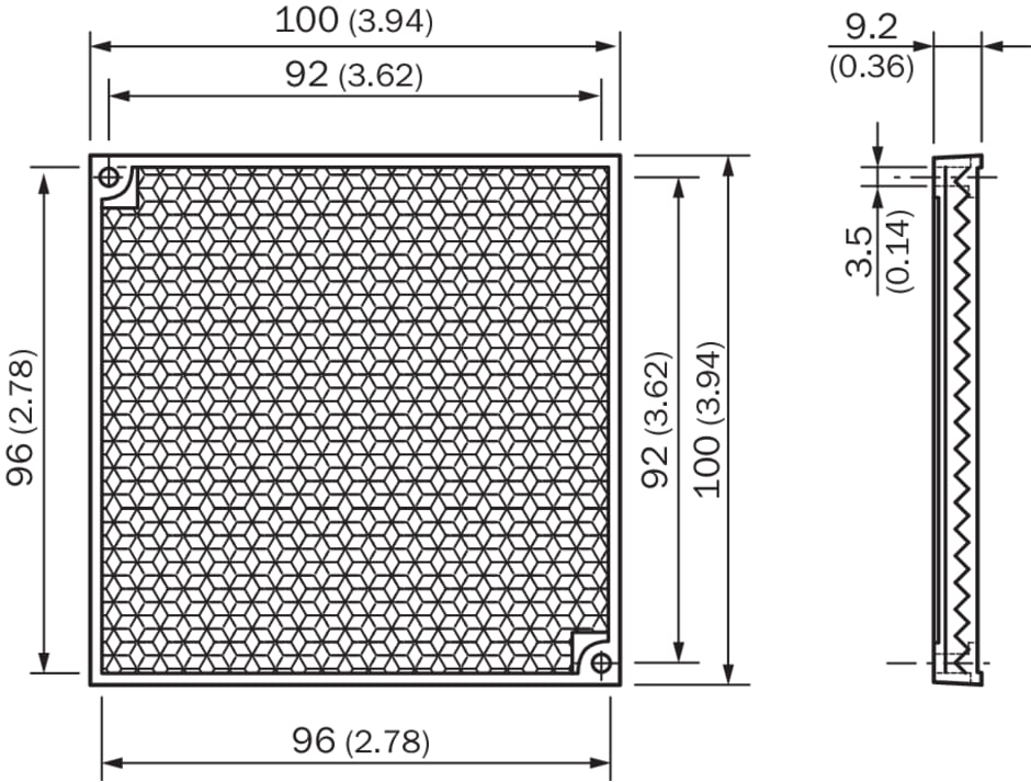 réflecteurs et optique, réflecteurs, PL100, Description: Rectangulaire, à visser, Dimensions: 100 mm 100 mm, Température de fonctionnement: –20 °C ... +65 °C