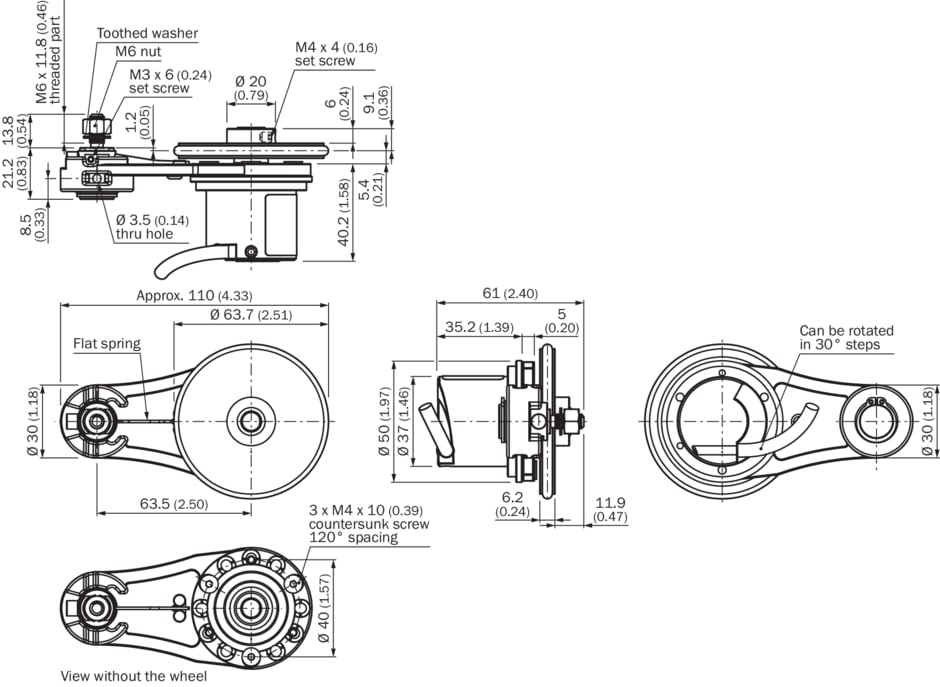 Codeur à roue mesureuse, DBV50, DBV50E-22EKB2000, Circonférence de la roue: 200 mm, Surface d’une roue mesureuse: Joint torique NBR70, Interface de communication: 7 V ... 30 V, incrémental, HTL, Push pull, Tension d'alimentation: 7 V ... 30 V, Mode de raccordement: Câble, 8 fils, universel, 1,5 m, Résolution en impulsions/mm: 10, Version bras à ressort: Bras à ressort de 63,5 mm, roue mesureuse côté montage, 1 roue mesureuse