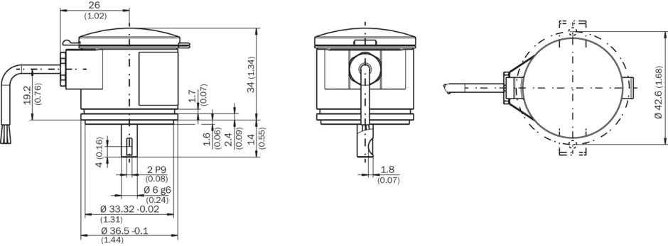 codeurs absolus, ACS/ACM36, ACS36-L1K0-K01, Version monotour ou multitours: Monotour, Nombre de pas par tour: 3.723, Interface mécanique: Arbre plein bride synchro 6 mm x 12,4 mm (avec surface), Interface de communication: Analogique, tension, Mode de raccordement: Câble, radial, 1,5 m