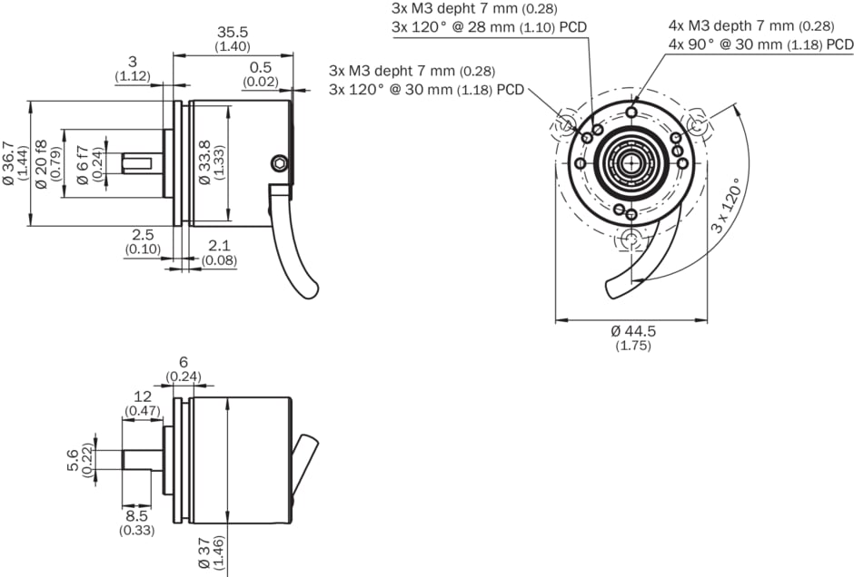 codeurs incrémentaux, DBS36/50, DBS36E-S3PK02000, Interface mécanique: Arbre plein bride de serrage 6 mm x 12 mm (avec surface), Interface de communication: 4,5 V ... 5,5 V, Collecteur ouvert, Mode de raccordement: Câble, 5 fils, universel, 1,5 m, Impulsions par tour: 2.000