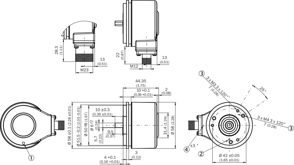 codeurs incrémentaux, DBS60, DBS60E-S1AA01024, Interface mécanique: Arbre plein bride synchro 6 mm x 10 mm (avec surface), Interface de communication: 4,5 V ... 5,5 V, TTL, RS-422, Mode de raccordement: Connecteur mâle, M23, 12 pôles, radial, Impulsions par tour: 1.024, Type de bride / bras de couple: Bride avec 3 x M3 et 3 x M4
