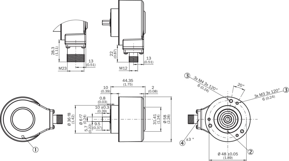codeurs incrémentaux, DBS60, DBS60E-S3FA05000, Interface mécanique: Arbre plein bride de serrage 6 mm x 10 mm (avec surface), Interface de communication: 4,5 V ... 30 V, TTL, HTL, HTL, Mode de raccordement: Connecteur mâle, M23, 12 pôles, radial, Impulsions par tour: 5.000, Type de bride / bras de couple: Bride avec 3 x M3 et 3 x M4
