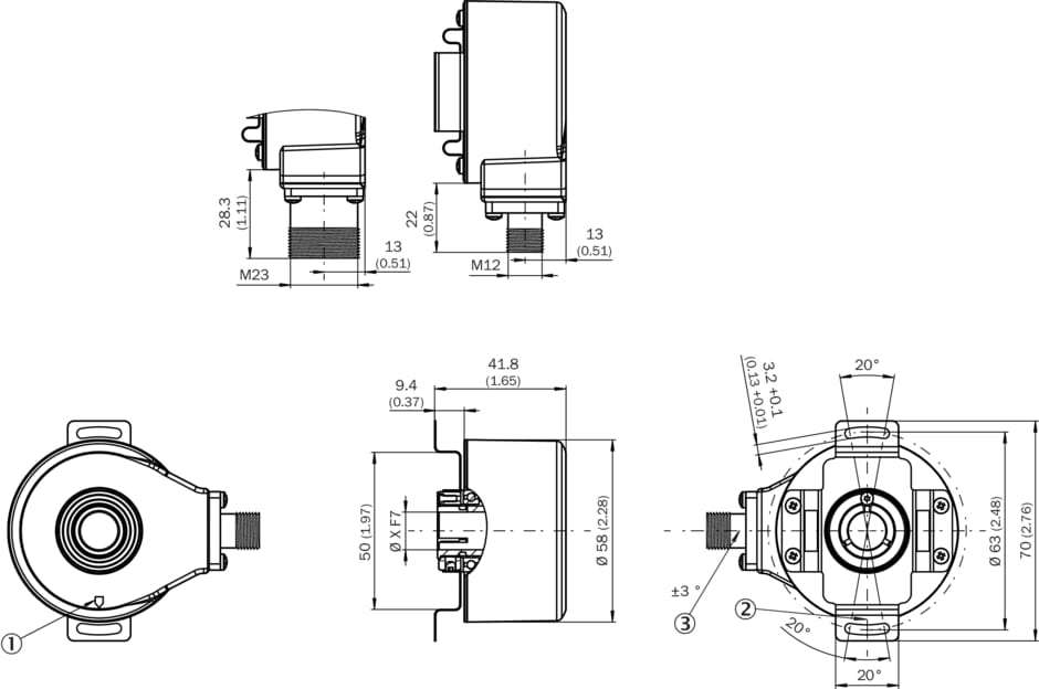 codeurs incrémentaux, DBS60, DBS60E-TDFAB1024, Interface mécanique: Axe creux traversant 10 mm (Bornes à l’avant), Interface de communication: 4,5 V ... 30 V, TTL, HTL, HTL, Mode de raccordement: Connecteur mâle, M23, 12 pôles, radial, Impulsions par tour: 1.024, Type de bride / bras de couple: Support de couple bilatéral, cercle de trou 63 mm