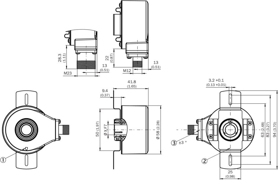 codeurs incrémentaux, DBS60, DBS60E-TEFA01024, Interface mécanique: Axe creux traversant 12 mm (Bornes à l’avant), Interface de communication: 4,5 V ... 30 V, TTL, HTL, HTL, Mode de raccordement: Connecteur mâle, M23, 12 pôles, radial, Impulsions par tour: 1.024, Type de bride / bras de couple: Support de couple bilatéral, trou oblong, cercle de trou 63 mm - 83 mm