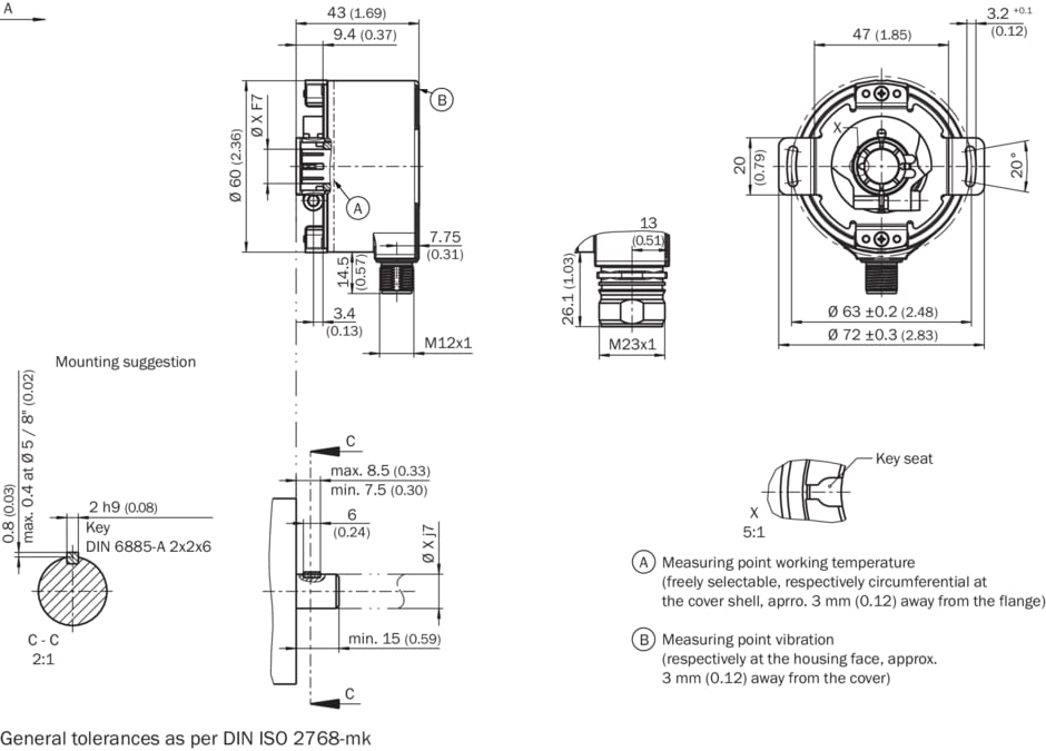 Codeur de sécurité, DFS60S Pro, DFS60S-TDOC01024, Niveau d'intégrité de la sécurité: SIL 2 (CEI 61508), limite d'exigence SIL 2 (CEI 62061), Niveau de performance: PL d (EN ISO 13849), Interface mécanique: Axe creux traversant 10 mm (avec rainure de clavette), Interface de communication: 4,5 V ... 32 V, Sin/Cos, non programmable, Mode de raccordement: Connecteur mâle, M12, 8 pôles, radial, Périodes sin/cos par tour: 1.024, Filtre de fréquence de commutation: non
