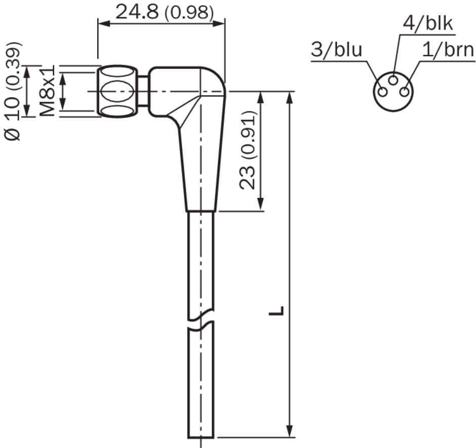 connecteurs et câbles, Câbles pour capteurs-actionneurs, DOL-0803-W02MRN, Mode de raccordement tête A: Connecteur femelle, M8, 3 pôles, coudé, Mode de raccordement tête B: Extrémité de câble ouverte, Type de signal: Câble capteur / actionneur, Câble: 2 m, 4 fils, PP, Description: Câble capteur / actionneur, non blindé, Raccordement: Extrémité de câble ouverte, Remarque: Ce produit résiste généralement aux produits de nettoyage chimiques (voir Ecolab) et à d'autres produits comme le H2O2, le CH2O2. Avant utilisation, vérifier la résistance du matériau aux produits de nettoyage à utiliser., Résistant à l’acide lactique et au peroxyde d’hydrogène (H2O2), Domaine d'utilisation: Environnements humides et hygiéniques, Mode chaîne porte-câble