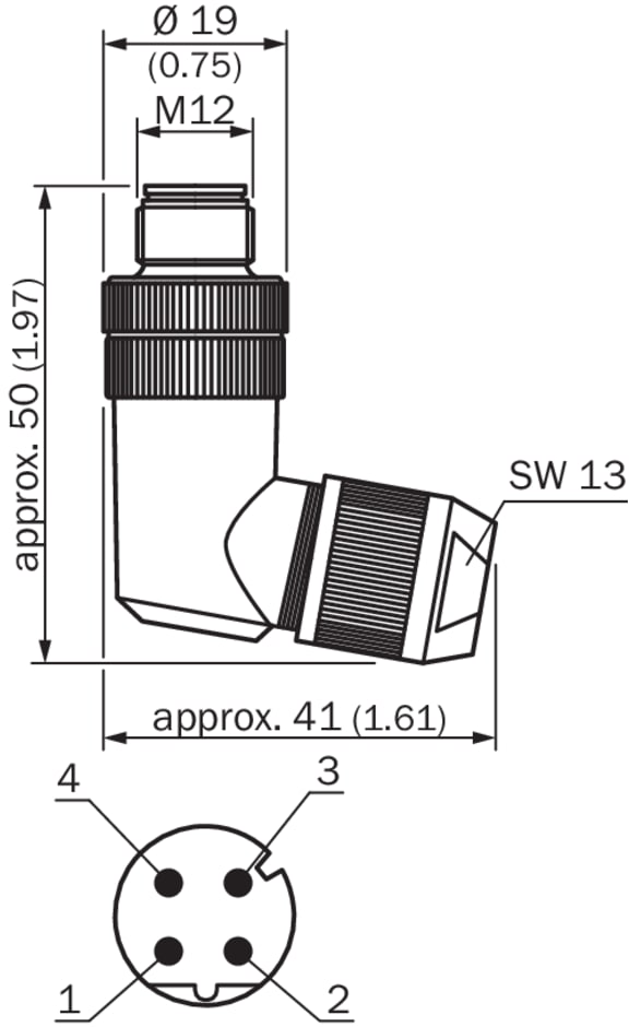 connecteurs et câbles, connecteur enfichable confectionnable, STE-1204-WE, Mode de raccordement tête A: Connecteur mâle, M12, 4 pôles, coudé, Codage D, Type de signal: Ethernet, Câble: CAT5, CAT5e, Description: Ethernet, blindé, Raccordement: Raccord autodénudant rapide, Section du conducteur admissible: 0,14 mm² ... 0,34 mm²