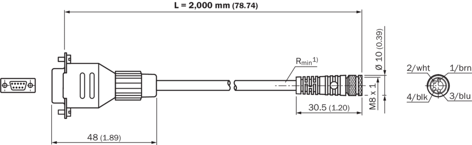 connecteurs et câbles, autres connecteurs mâles et câbles, YF8U14-020VA3FDSA9, Mode de raccordement tête A: Connecteur femelle, M8, 4 pôles, droit, Mode de raccordement tête B: Connecteur femelle, D-Sub, 9 pôles, droit, Type de signal: Câbl