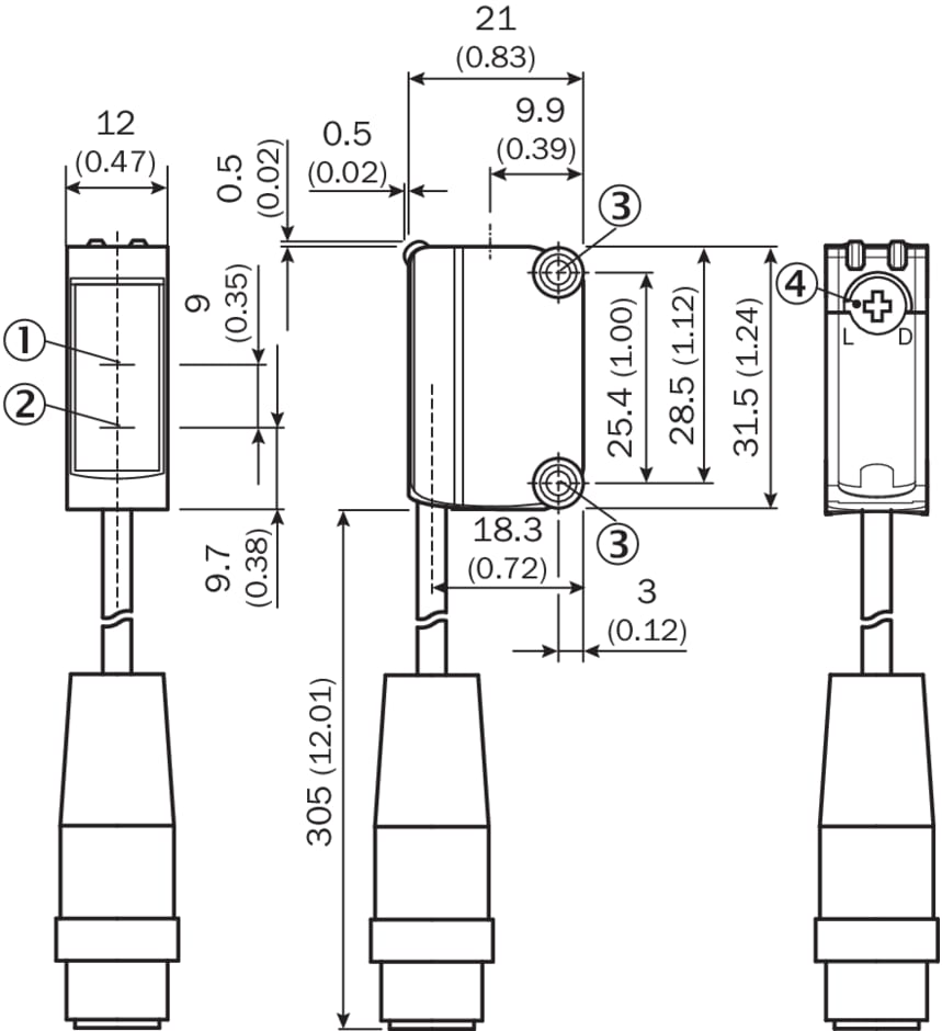 détecteurs de contraste, KTM, KTM-MB31112P, Source d'émission: LED, blanche, Interface de communication: -, Distance de détection: 12,5 mm, Sortie de commutation: PNP, NPN, Taille du spot lumineux: Ø 2 mm (12,5 mm), Position du spot lumineux: Rond, Émission de lumière: Côté long du boîtier, Mode de raccordement, détail: Câble avec connecteur mâle M12, 4 pôles, Réglage: Potentiomètre, tournevis, Matériau du boîtier: Plastique